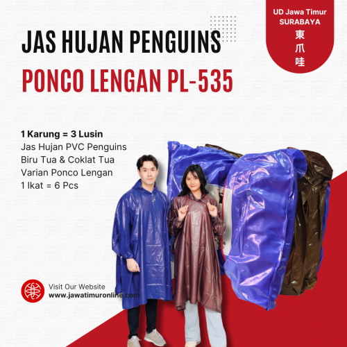 Jas Hujan Poncho Lengan Polos seri PL 535 Penguins Bahan 100% PVC, nyaman dipakai Kualitas terjamin tidak tembus Ukuran DEWASA WARNA CAMPUR DONGKER & COKLAT HARGA DIATAS ADALAH HARGA PER LUSIN (12 BIJI) Kulak-an Online ? Ya, Jawatimuronline !